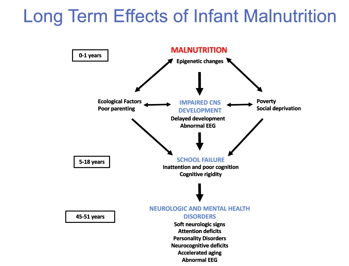 Being still at the present malnutrition a worldwide problem even in the developed countries, the outcome of this study is to produce evidence about the persistent negative effects of the early malnutrition in the life of the persons, which could support the international organizations to create consciousness in the governments about the importance of this problem and to create policies to fight against it.